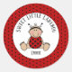 Bébé mignon habillé comme une coccinelle avec des points rouges et noirs. Ajoutez votre propre texte, nom ou message. Idéal pour les sacs de faveur pour baby showers, anniversaires et plus.
