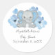 Sticker Rond Bébé bleu garçon éléphant Baby shower fleurs ballo