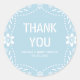 Ce charmant autocollant rond est une façon délicieuse d'ajouter une touche d'élégance et de culture à votre douche bébé garçon. L'art folklorique mexicain complexe présente des fleurs blanches délicates et des feuilles contre un arrière - plan bleu bébé doux, créant un look magnifique et sophistiqué. L'ajout du texte "Merci" en blanc ajoute une touche de grâce, ce sticker est une façon réfléchie d'express de votre gratitude aux invités.