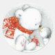 Sticker Rond Bébé de Noël Ours polaire Baiser Oiseau