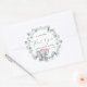 Mignonne sticker pour votre bébé fille douche merci cartes et faveurs de fête avec "A Sweet Merci" dans un mélange de typographie simple et un script élégant avec un coeur swash et une aquarelle d'un bébé éléphant rose sur une couronne de vert d'eucalyptus sauge.
