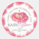 Sticker Rond Bébé en Fleur baby shower rose aquarelle en faveur