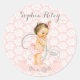 Couleur rose, blanc et gris avec bébé vintage portant un collier de perle.
