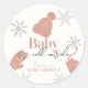 Cet autocollant de baby shower pour fille mignon et moderne "bébé il fait froid dehors" comporte une beanie et une paire de gants en rose poussiéreux sur un arrière - plan blanc avec des flocons de neige. Personnalisez-le selon vos besoins. Vous pouvez trouver des produits correspondants dans mon magasin.