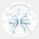 Complétez votre célébration hivernale avec ces élégants autocollants ronds pour cadeaux de baby shower "Baby It's Cold Outside" ornés d'un ruban bleu. Avec des flocons de neige délicats et un ruban de satin bleu classique, ces autocollants polyvalents sont la touche finale parfaite pour votre décoration de fête.