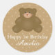 Sticker Rond Bébé mignon Brown Teddy Bear Premier anniversaire