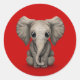 Sticker Rond Bébé mignon Eléphant Calf assis, Rouge