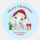 Sticker Rond Bébé mignon éléphant Joyeux Noël bleu