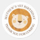 Célébrez le premier anniversaire sauvage de votre petit avec ces adorables lions safari merci les autocollants ! Dotés d'un lion souriant sur un arrière - plan blanc immaculé, ces étiquettes ronds ajoutent une touche de jungle ludique aux faveurs de la fête et traitent les sacs. Idéal pour une fête d’anniversaire avec un thème safari ou zoo. Facilement personnalisable avec le nom et le message de votre enfant.