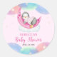 Sticker Rond Bébé mignon Pingouin Baby shower rose