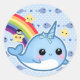 Sticker Rond Bébé narval mignon avec arc-en-ciel et étoiles