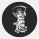 Sticker Rond Bébé Reaper Skull Scythe Blackwork Tattoo Flash