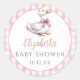 Sticker Rond Bébé Shower Mignon Petit Oie Rose à Carreaux