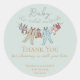 Ces autocollants de Merci de Baby shower d'hiver, neutres pour les hommes et les femmes, présentent de jolies illustrations dessinées à la main de costumes de pyjama, d'animaux peluches et de bibs pour bébés accrochés à une ligne de vêtements. Nom, événement, date et message de remerciement personnel personnalisables. Élégant arrière - plan vert doux.