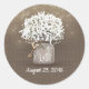 Sticker Rond Bébé's Breath Mason Jar et Rustic Burlap