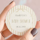 Sticker Rond Beige Stripes with Scalloped Frame Baby Shower