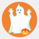 Sticker Rond Belle Halloween Ghost & Citrouille sur Orange Clas