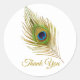 Sticker Rond Belle plume de paon dorée Merci