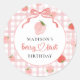 Berry First Strawberry rose En vichy 1er Anniversaire Classic Round Sticker