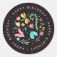 Sticker Rond Beurre mignon et fleurs Joyeux Anniversaire Noir