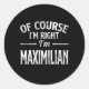 Sticker Rond Bien Sûr, J'Ai Raison, Je Suis Maximilian