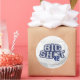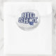 Big Shot Soccer Ball est conçu avec un style collégial courbant lettrage avec le O dans "shot" comme un ballon de football bleu et blanc peint, futball, ou football. Idéal pour les amateurs de sports de tous âges.