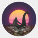 Retro Bigfoot Sasquatch Riding Le Loch Ness Monster Drôle Cadeau Classic Round Sticker Classic Collection.