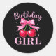 Sticker Rond Birthday Girl Coquette Bow Cherry Birthday Girls W