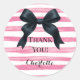 Sticker Rond Black Bow with Pink White Stripe Custom