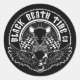 Logo d'entreprise fictif pour "Black Death Tire Co." Crâne ailé et rat avec à damiers drapeaux dans un joint rond. Disponible en b/w et noir/orange.