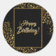 Sticker rond classique en or noir et bijoux Leopard. Design avec parties scintillant et bijoux en faux or. Parfait pour une célébration élégante et glamour. La police Happy Birthday est intégrée avec des diamants.