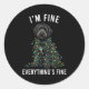 Sticker Rond Black Labradoodle Christmas I'm Fine Everything Is