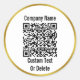 Vous pouvez remplacer l'image d'affichage par le fichier correspondant à votre code QR. Il existe des lignes de texte d'affichage noir que vous pouvez modifier pour afficher un message personnalisé. Ces élégants autocollants ont du texte noir dans un cercle blanc. La fausse bordure d'or (pas de feuille) est un rendu artistique.