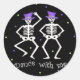 Sticker Rond Black White Halloween Skeleton Bones Danse
