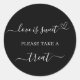 Un arrière - plan noir. Avec le texte : L'amour est doux, s'il vous plaît prenez un régal. Texte blanc.