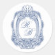 Sticker Rond Blason Baroque Bleu Français Initiales Mariage Ant