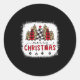 Sticker Rond Bleached Merry Christmas Tree Funny Leopard Plaid