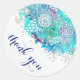 Sticker Merci customisé : Joli Turquoise & Bleu Floral Mandala Motif / Subtle Cream Arrière - plan/ Personnalisé Typographie Moderne / Toute Phrase Ou Nom Peut Être Substitué