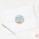 Sticker Rond Bleu Aqua Poussiéreux avec Fleur de Rosé Merci