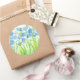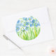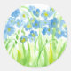 Sticker Rond Bleu Aquarelle Fleur Jardin Pastel