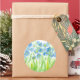Un joli autocollant décoré d'un jardin de fleurs de lin bleu doux et de feuilles vert printanier peints en aquarelle.
