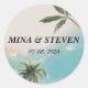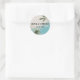 L'Autocollant bleu Watercolor Tropical Beach Gold Mariage Classic Round Sticker présente un design époustouflant avec des vagues bleu d'aquarelle, des accents tropicaux et d'élégants détails dorés, parfaits pour ajouter une touche de sophistication côtière aux invitations de mariage, aux faveurs et à la décoration.