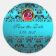 Sticker Rond BLEU BLACK DAMASK MONOGRAM, rouge rubis turquase