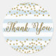 Sticker Rond Bleu Blanc Rayure Or Confettis Fête Merci