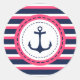 Sticker Rond Bleu bleu marine Hot rose rayures Ancre