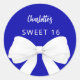 Un arrière - plan de couleur bleu roi. Décoré d'un grand arc blanc. Personnalisez et ajoutez un nom. Script manuscrit blanc.