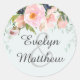 Sticker Rond Bleu clair avec Mariage de bouquet rose pâle