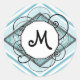 Un design rétro moderne amusant avec des rayures et des bulles dans un losange, avec des nuances de bleu glace, turquoise et bleu turquoise, avec un modèle monogramme personnalisable.
