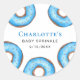 L'autocollant d'arrosage pour bébé de ce garçon est décoré de beignets bleu aquarelle et de typographie élégante. Facile à personnaliser. Aquarelle originale © Michele Davies.