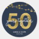 Sticker Rond Bleu Élégant Lumières 50e anniversaire de Mariage